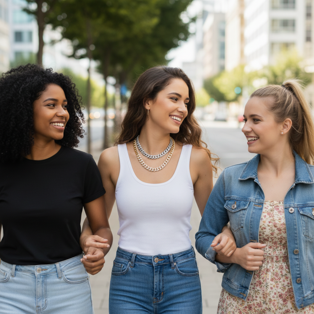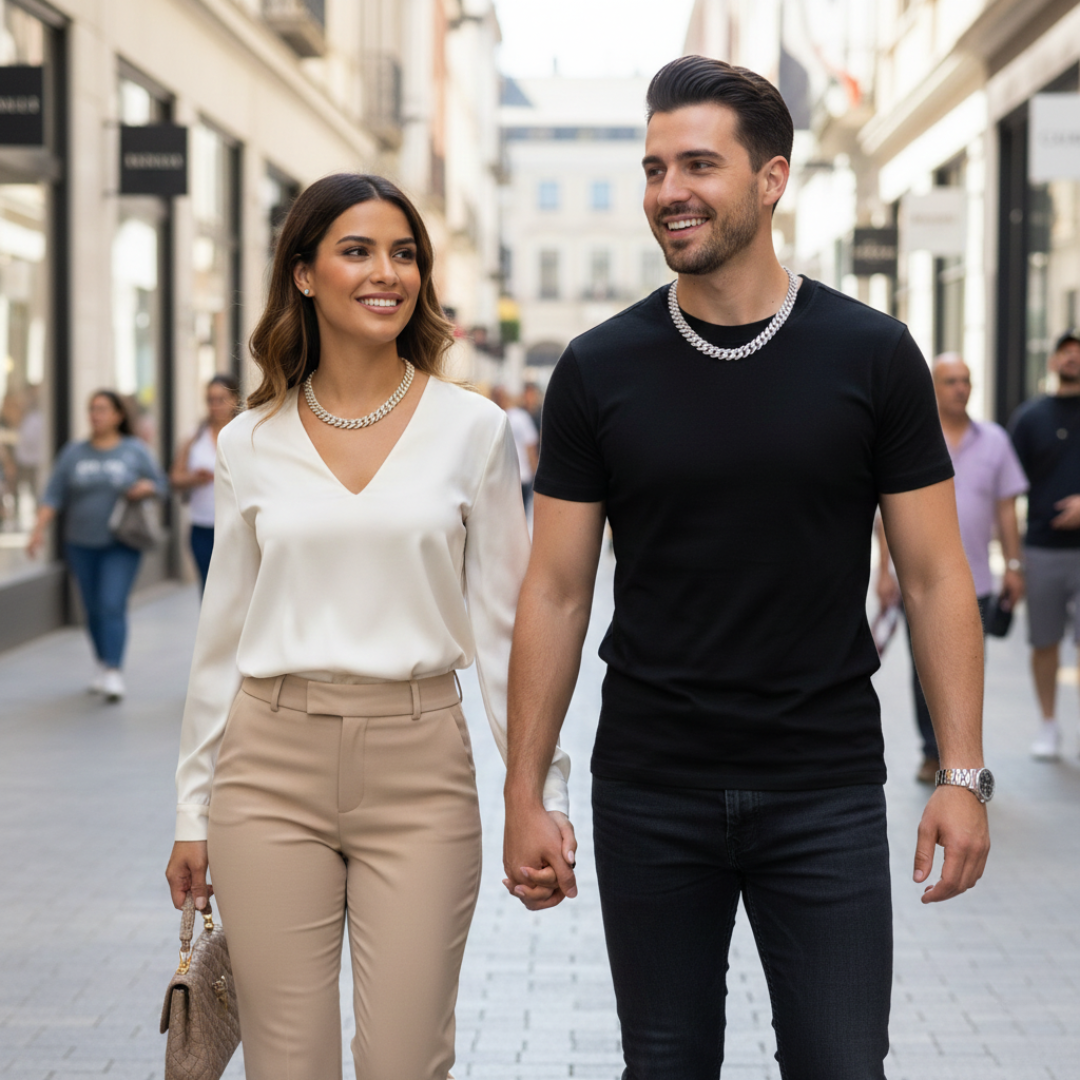 La moda non ha confini e Cristal lo dimostra. Il suo design a catena geometrica e decisa la rende un accessorio ideale anche per l’uomo che cerca un dettaglio di carattere. Non è solo un gioiello femminile: la sua estetica pulita e i materiali robusti si adattano perfettamente a un polso o a un collo maschile, aggiungendo un tocco di lusso urban e contemporaneo a t-shirt basic o camicie aperte.