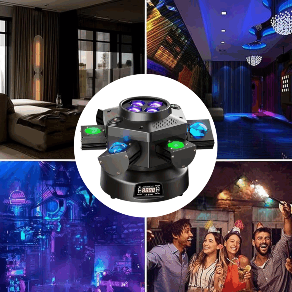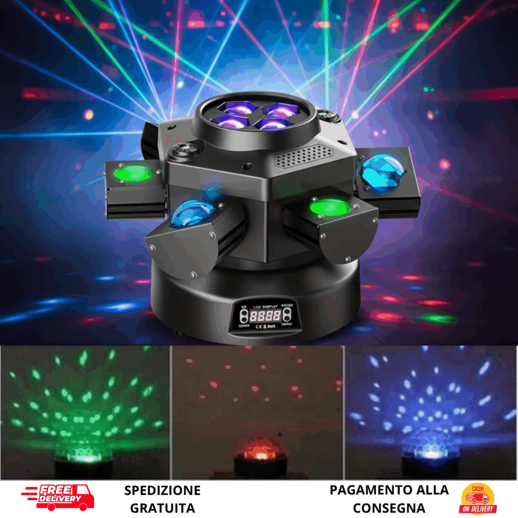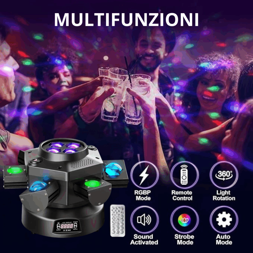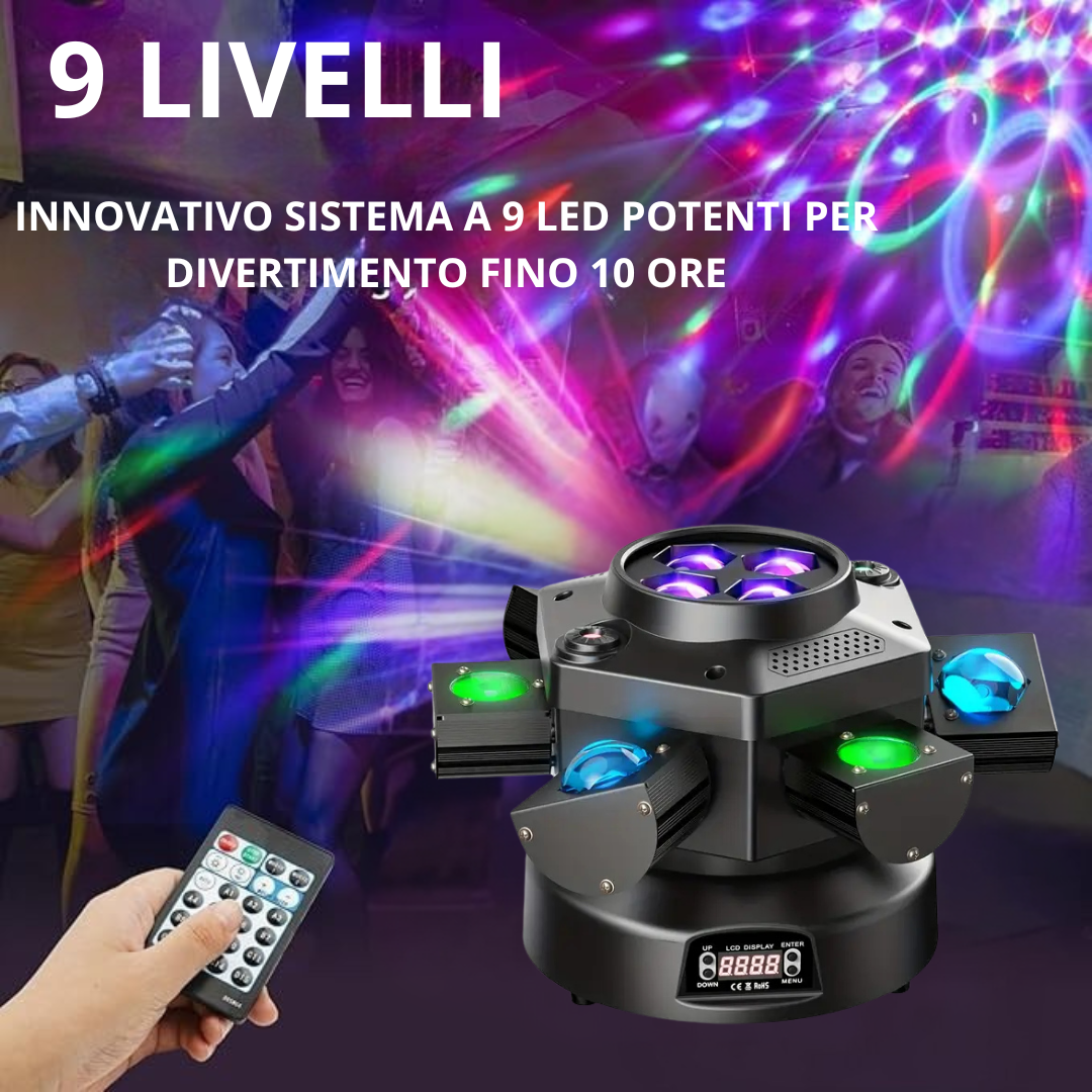 Preparati a una proiezione luminosa che va oltre ogni aspettativa. Dotata di 9 faretti LED ad alta luminosità da 3W ciascuno, la Magic Ball Light garantisce una potenza impressionante capace di inondare di colore e luce anche gli ambienti più ampila nostra tecnologia LED avanzata assicura una gamma cromatica ricca e una visibilità impeccabile, rendendo ogni raggio di luce visibile e coinvolgente, per un’esperienza visiva senza precedenti.