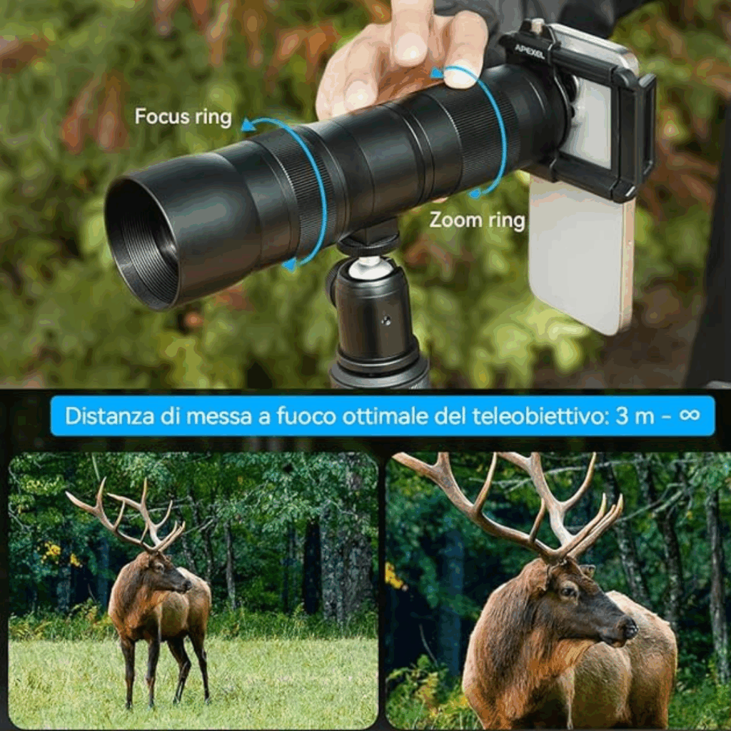 Con dimensioni ridotte ( 22,9 cm) e un peso di soli 741g, è il 65% più leggero degli obiettivi zoom tradizionali. Questo lo rende facile da trasportare per avventure all’aperto e riduce la fatica durante le riprese a mano libera.Ideale per gli appassionati di bird watching e amanti della natura.