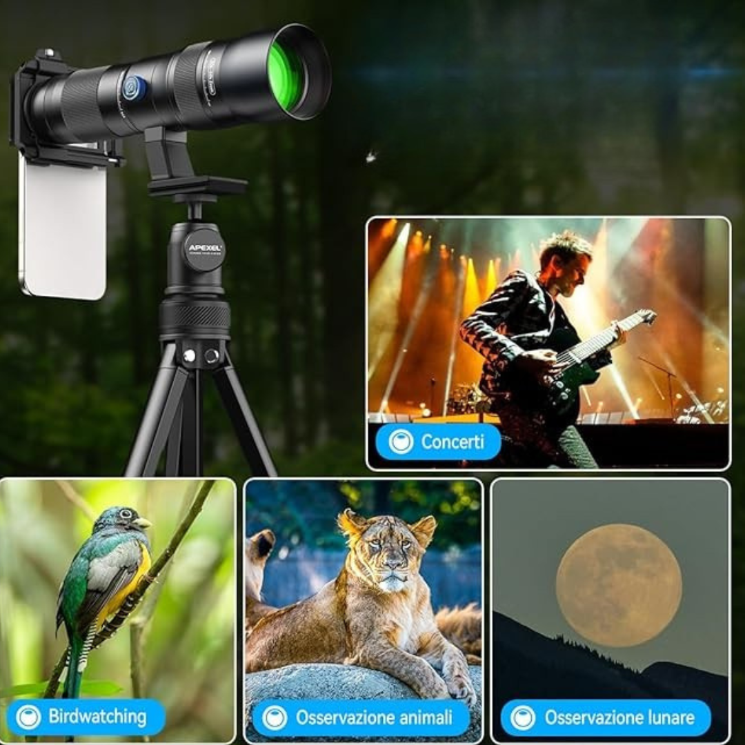 Il meccanismo di zoom e messa a fuoco continui e ottimizzati consente uno zoom fluido senza interruzioni e una messa a fuoco precisa.Ideale per vedere e scattare foto dei tuoi giocatori, o durante un concerto , oppure per appassionati di natura per riprese fantastiche e professionali.