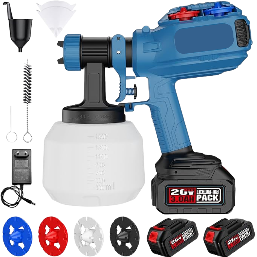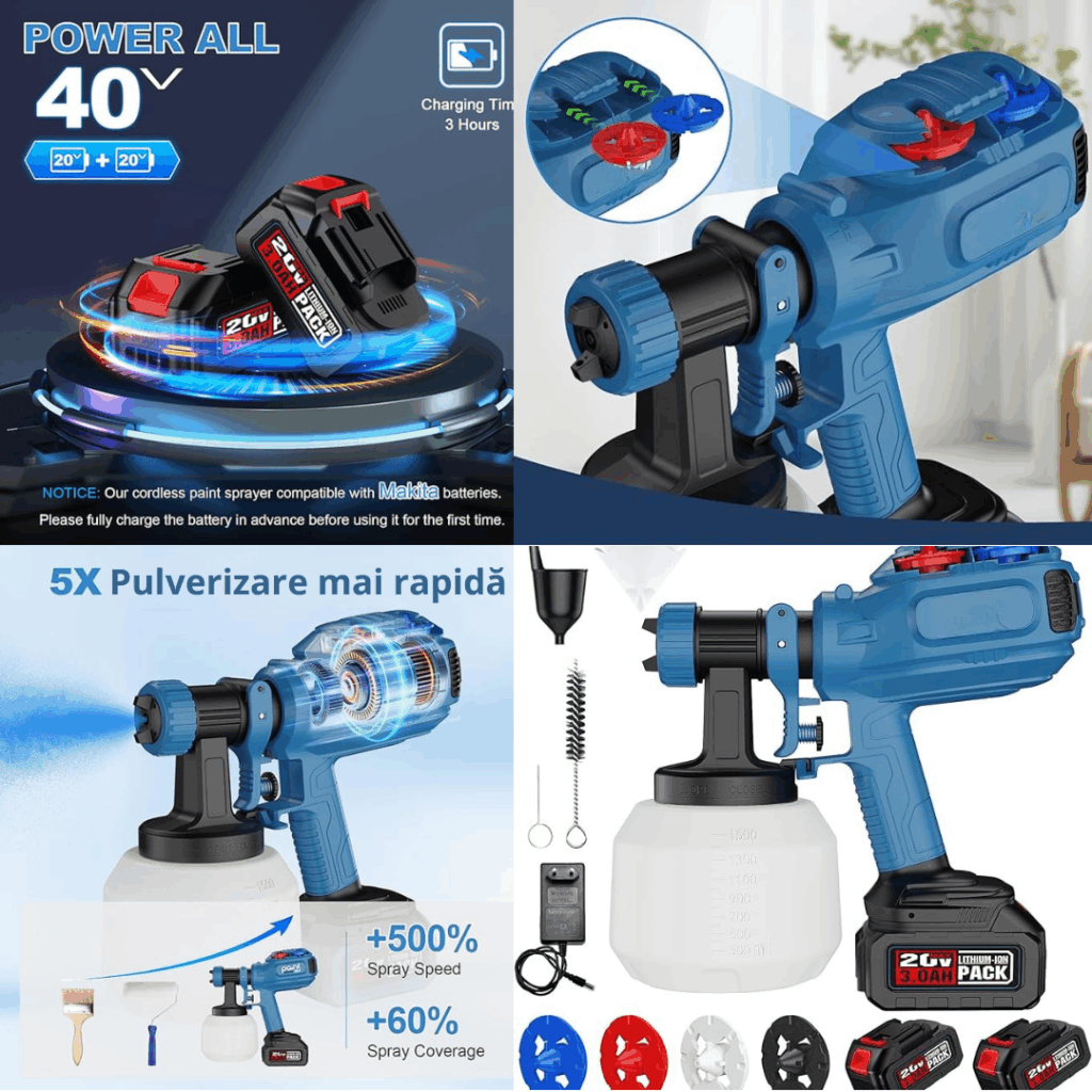 Echipat cu două baterii reîncărcabile de 3,0 Ah (pentru o autonomie totală de aproximativ 40 de minute cu ambele), oferă o durată de viață a bateriei peste medie și vă eliberează de constrângerile unei prize de alimentare. Bucurați-vă de bricolaj fără fir în orice zonă, sporind confortul și viteza de pulverizare.