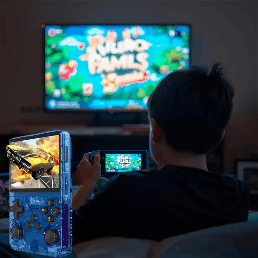 Trasforma il gioco portatile in un’esperienza domestica condivisa. La console supporta la connessione via cavo AV alla TV, permettendo di trasformare lo schermo da piccolo a grande in un istante per una visione e un divertimento più coinvolgenti e condivisi con amici e famiglia.