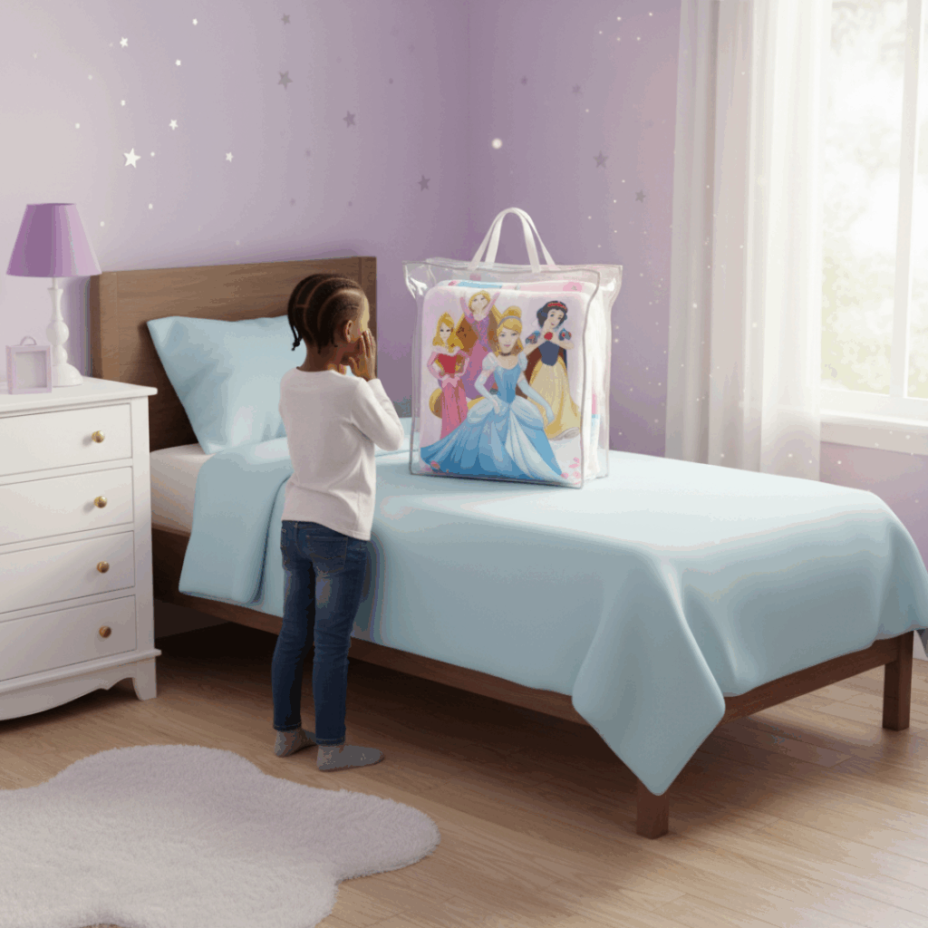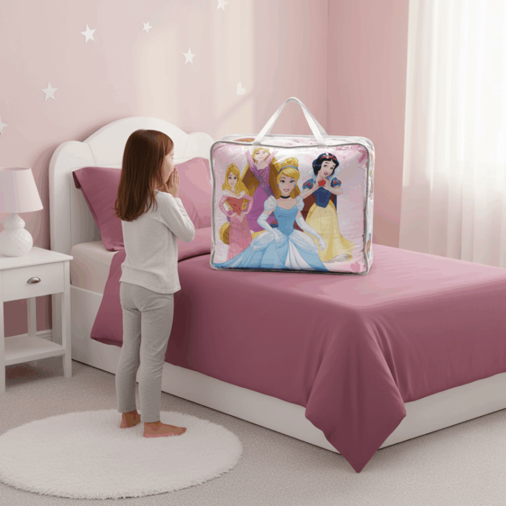 Trasforma il letto in un castello incantato con le sue eroine preferite. Il piumone è realizzato con stampe ufficiali ad alta definizione e materiali di alta qualità ipoallergenici e testati, garantendo un sonno sereno e privo di irritazioni per la pelle delicata.Il tuo bambino dormirà caldo e grazie alla traspirazione del materiale senza sudare.